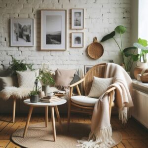 - Descripción: El estilo Kinfolk se inspira en la revista homónima que promueve un estilo de vida sencillo, íntimo y conectado con la naturaleza. Se caracteriza por su estética minimalista y acogedora, con una paleta de colores suaves, muebles de madera clara y elementos naturales. Prioriza la calidad sobre la cantidad y fomenta la convivencia y la conexión interpersonal.